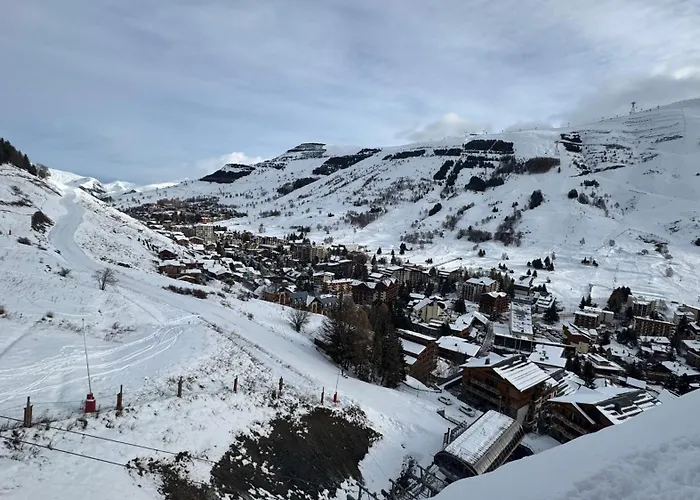 Le Flocon Du Soleil Apartment Les Deux Alpes is located a mere 1.3 km from Alpette Ski Lift and nearly a 20-minute walk from Vallee Blanche Ski Lift. Situated just around the corner from Super Venosc Ski Lift, this apartment offers a terrace where guests can relax and enjoy the mountain view.
